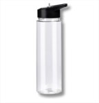 24 oz. Clear Hard Plastic Water Bottle with Straw. Custom printed with your full-color logo. Black lid. Wide mouth & portable for travel, gym, hiking, sports, work and more.
